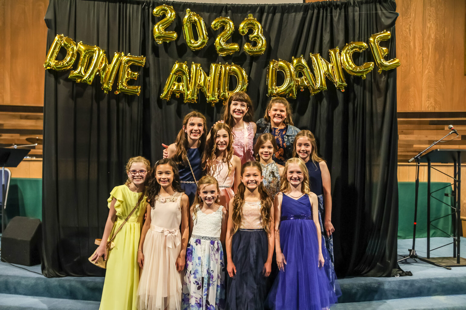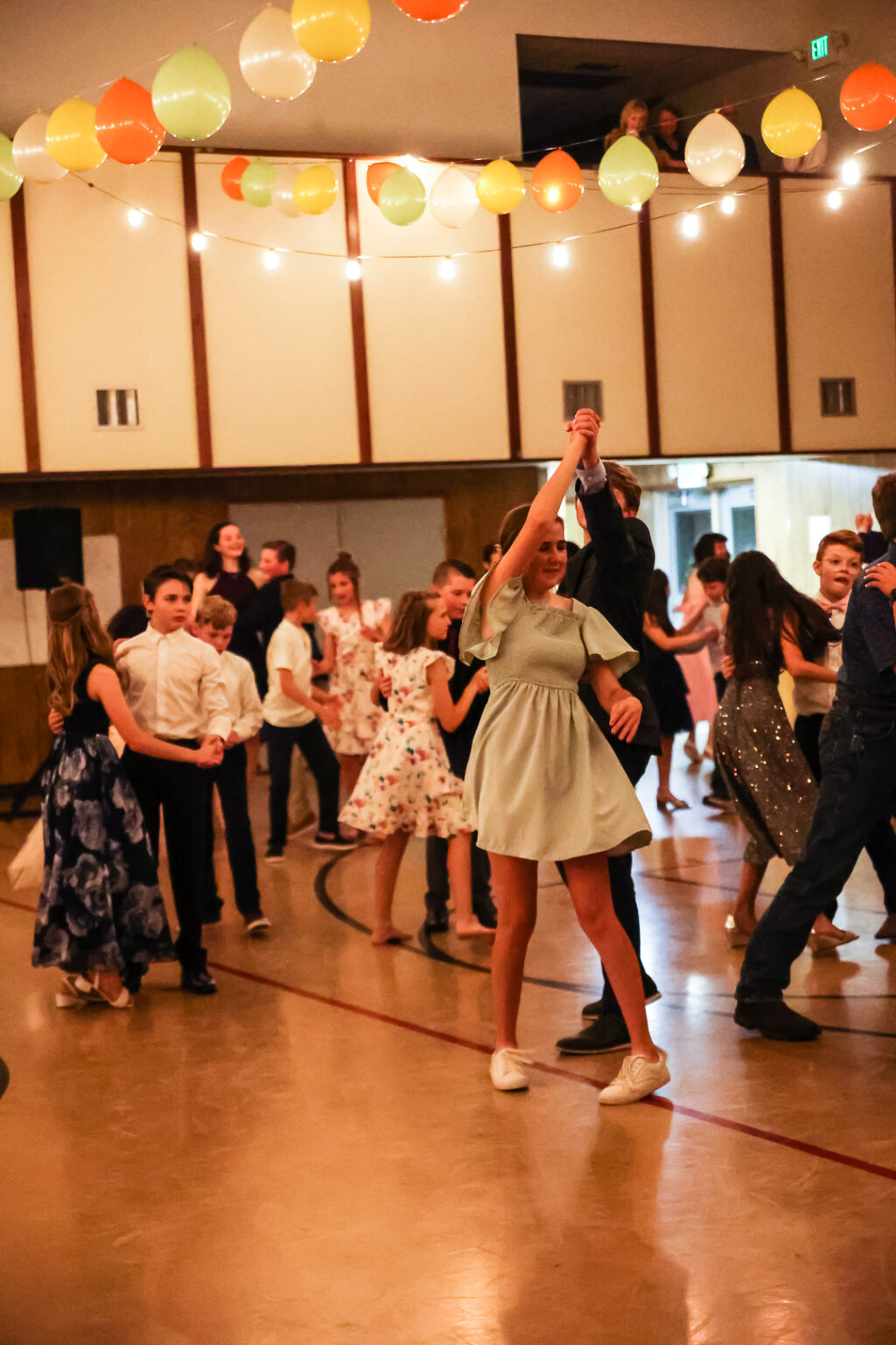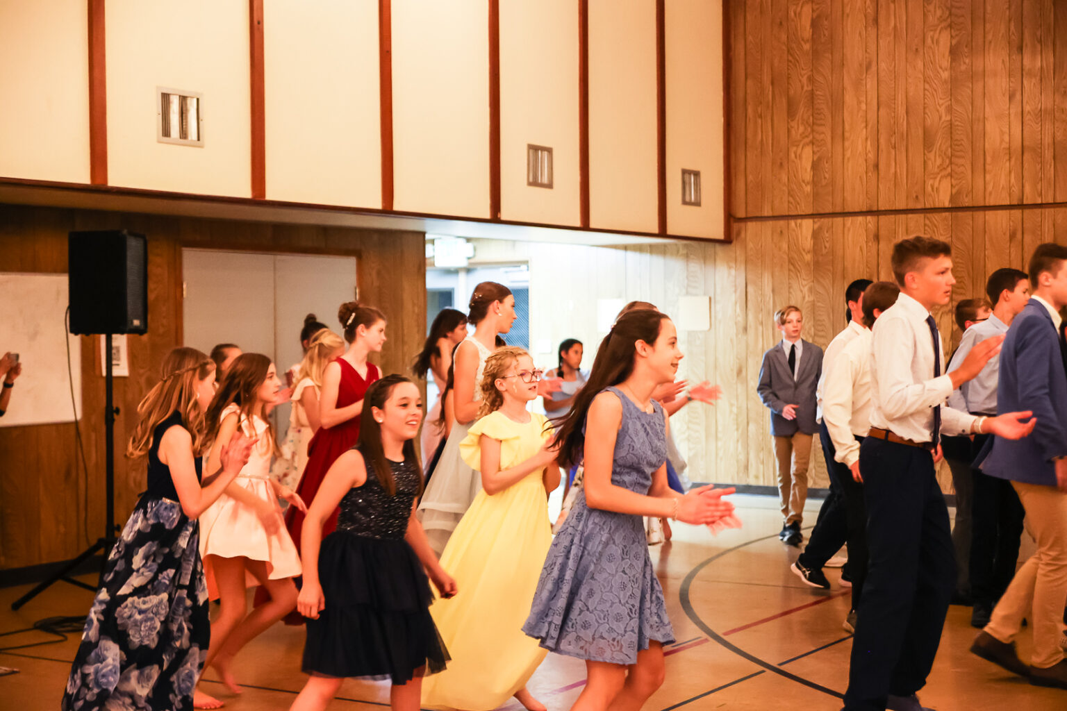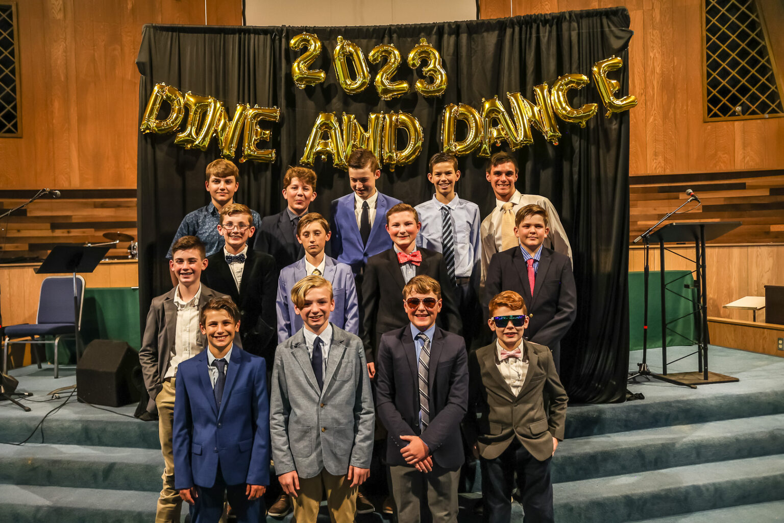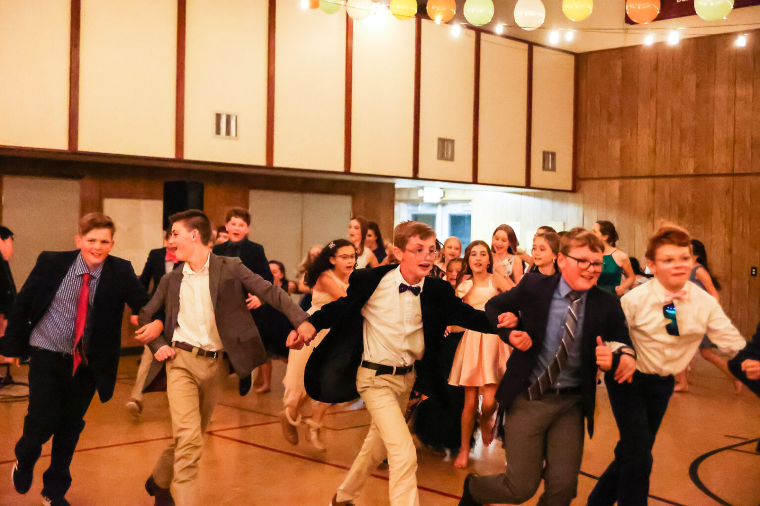 Students in our School of Logic had an amazing time at our 3rd annual Dine & Dance. We loved starting the evening with a photo shoot, followed by a three course meal. Students and staff were served by our Rhetoric students as well as a few volunteer parents. And our favorite Polite Pigeon reminded everyone to use certain table manners that they have been practicing all year in their Dance & Decorum class.