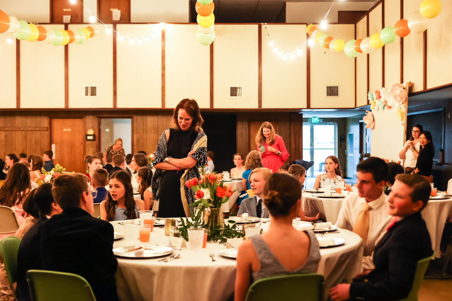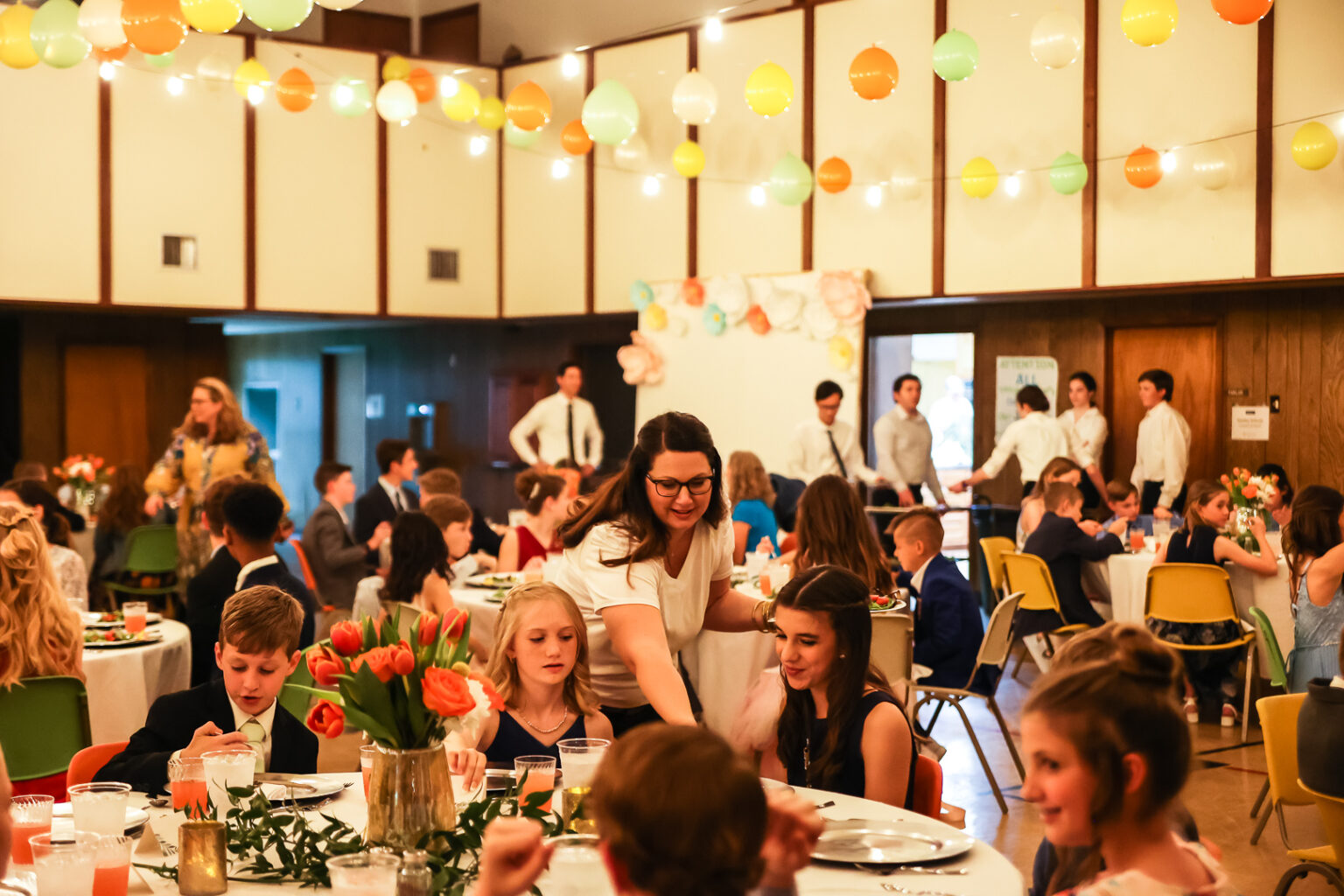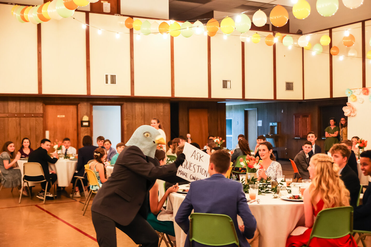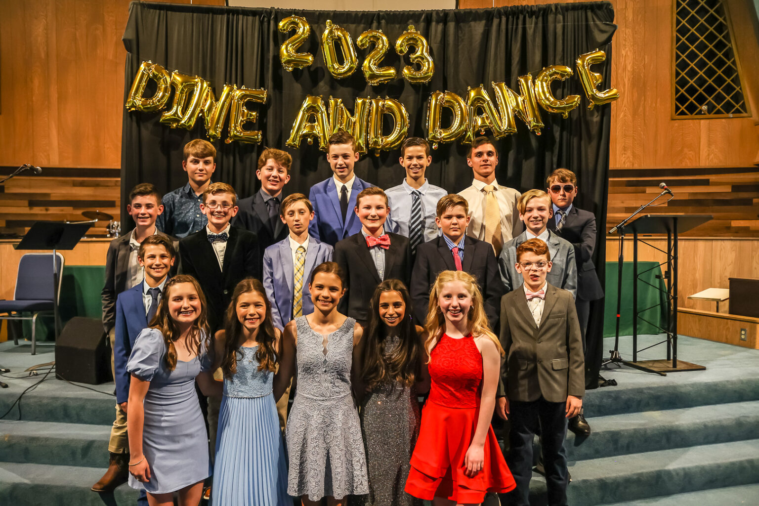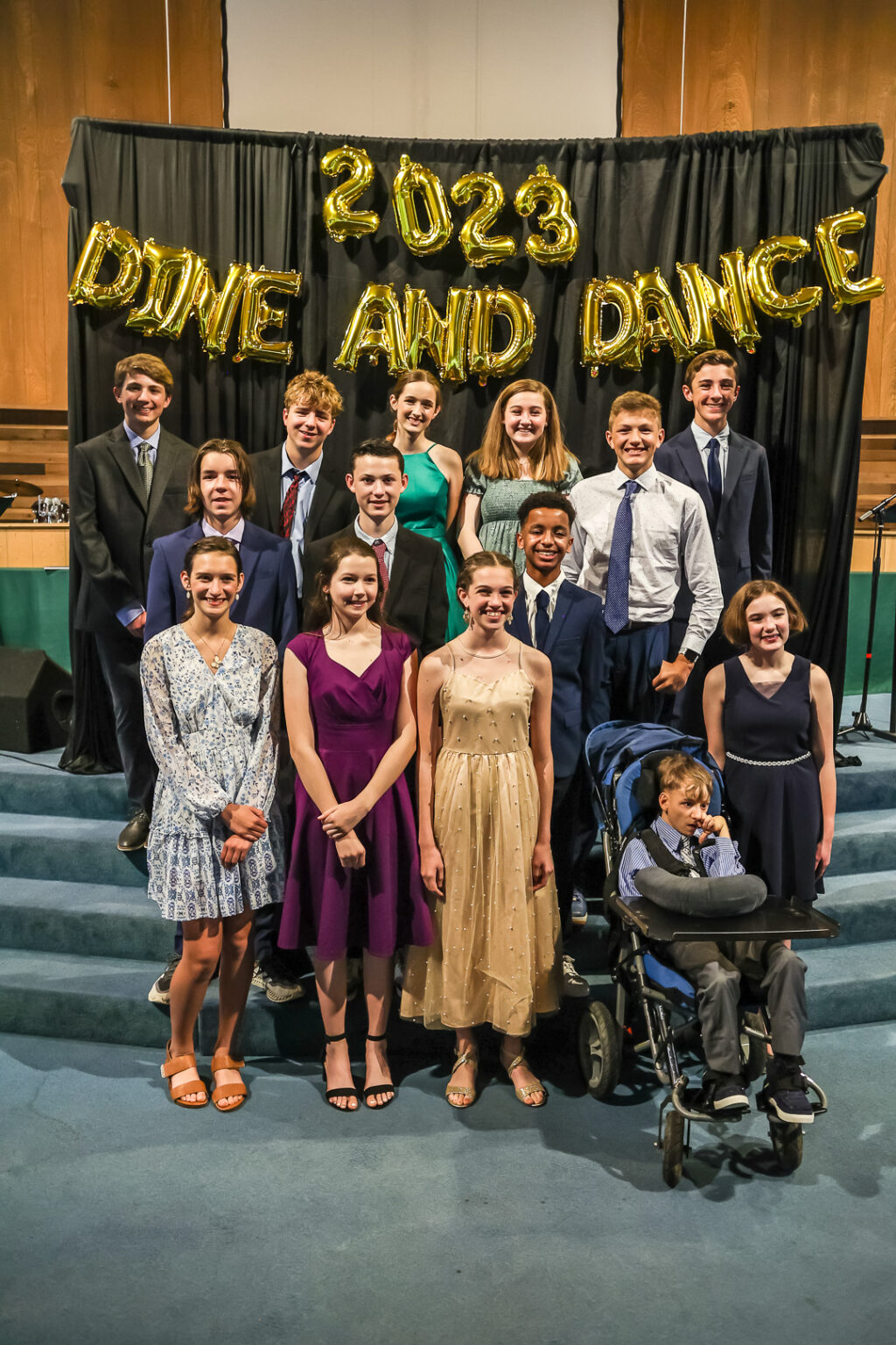Students in our School of Logic had an amazing time at our 3rd annual Dine & Dance. We loved starting the evening with a photo shoot, followed by a three course meal. Students and staff were served by our Rhetoric students as well as a few volunteer parents. And our favorite Polite Pigeon reminded everyone to use certain table manners that they have been practicing all year in their Dance & Decorum class.